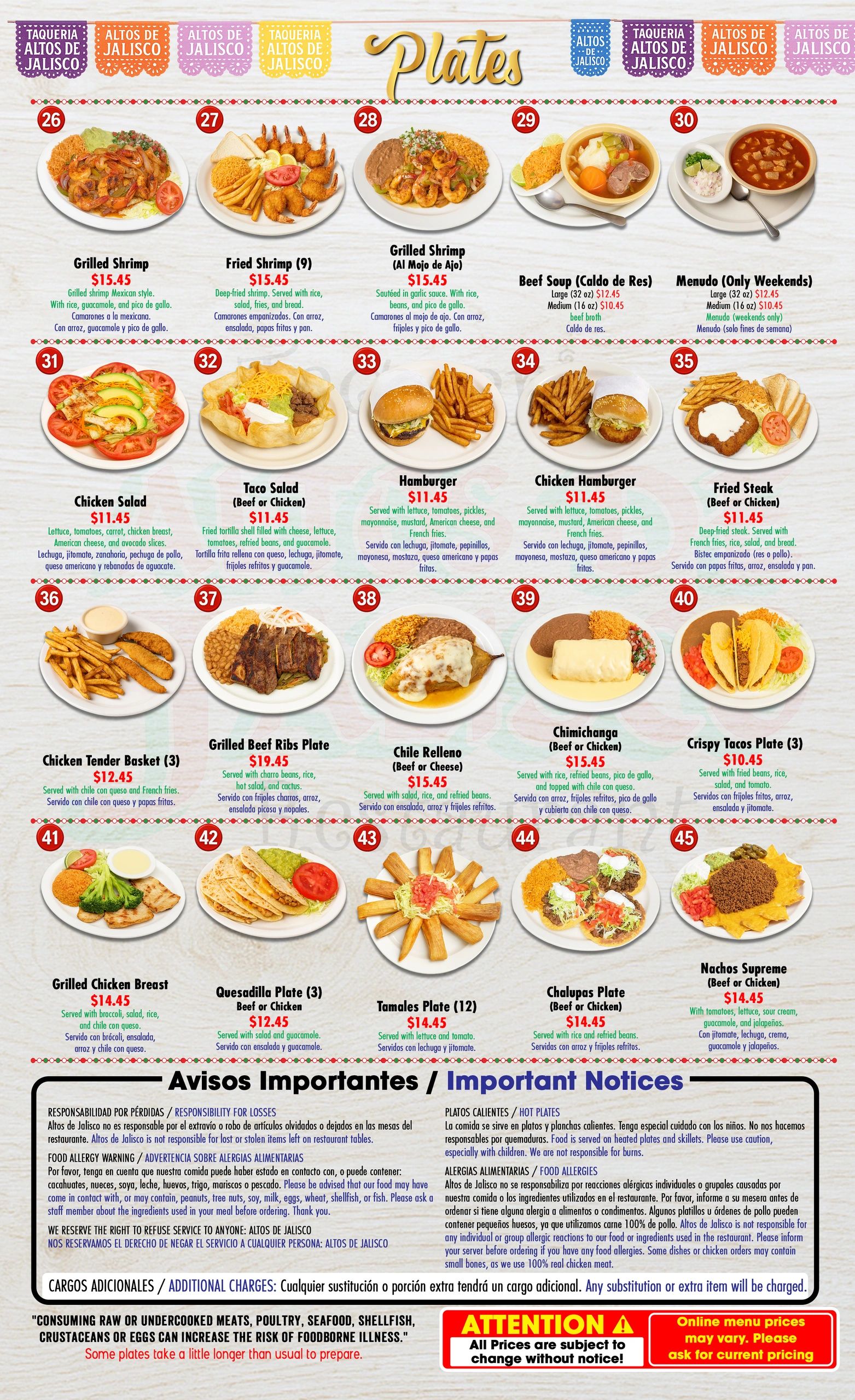 • Tacos, Burritos, Tortas..